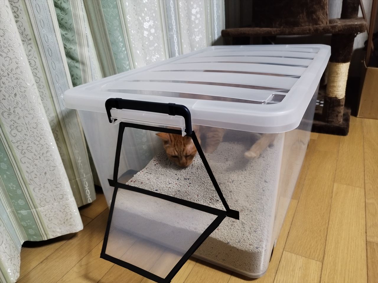 アイリスオーヤマの衣装ケースで猫トイレを作った