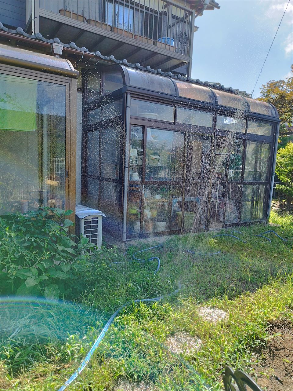あと最初の頃、うっかり網戸のままにしてサンルームの中をびしょびしょにしてしまうことが何度かあった。植物の葉がある程度壁になってくれるが、中央部分は通路であけてあったからだ。