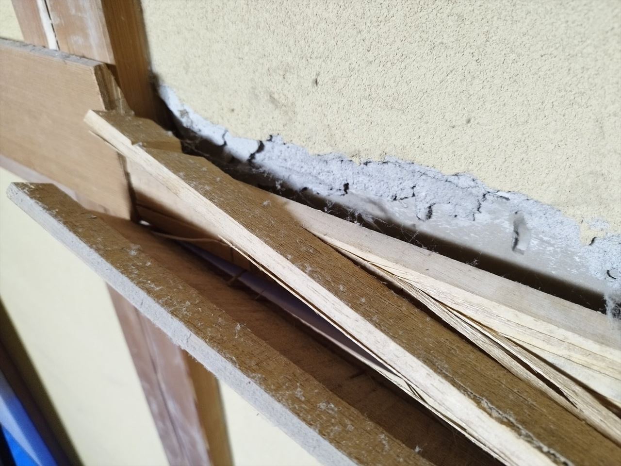 詳細アップは控えますが、アリに食べられてしまっていた板も数か所ありました。そういえば業者に依頼してシロアリ駆除したなんて話を親がしていたことがありました。その後は大丈夫だったらしく、生きているシロアリは一切見ませんでした。