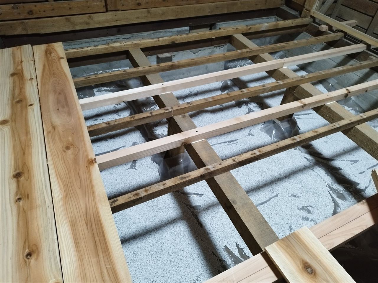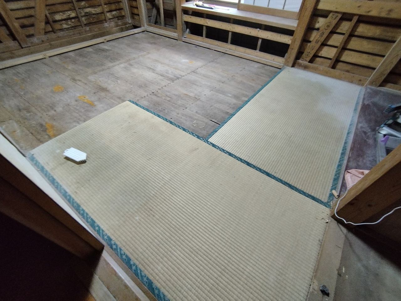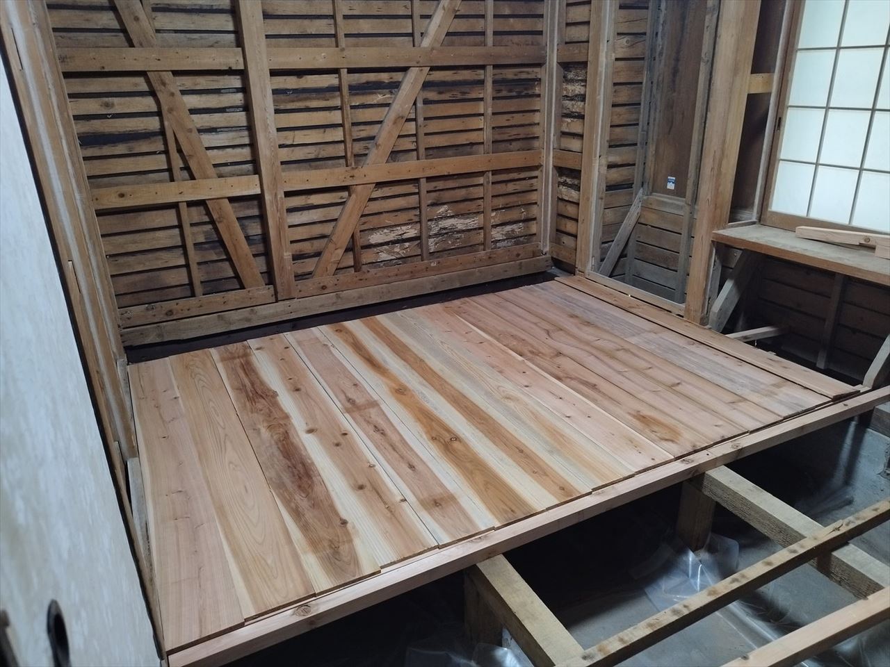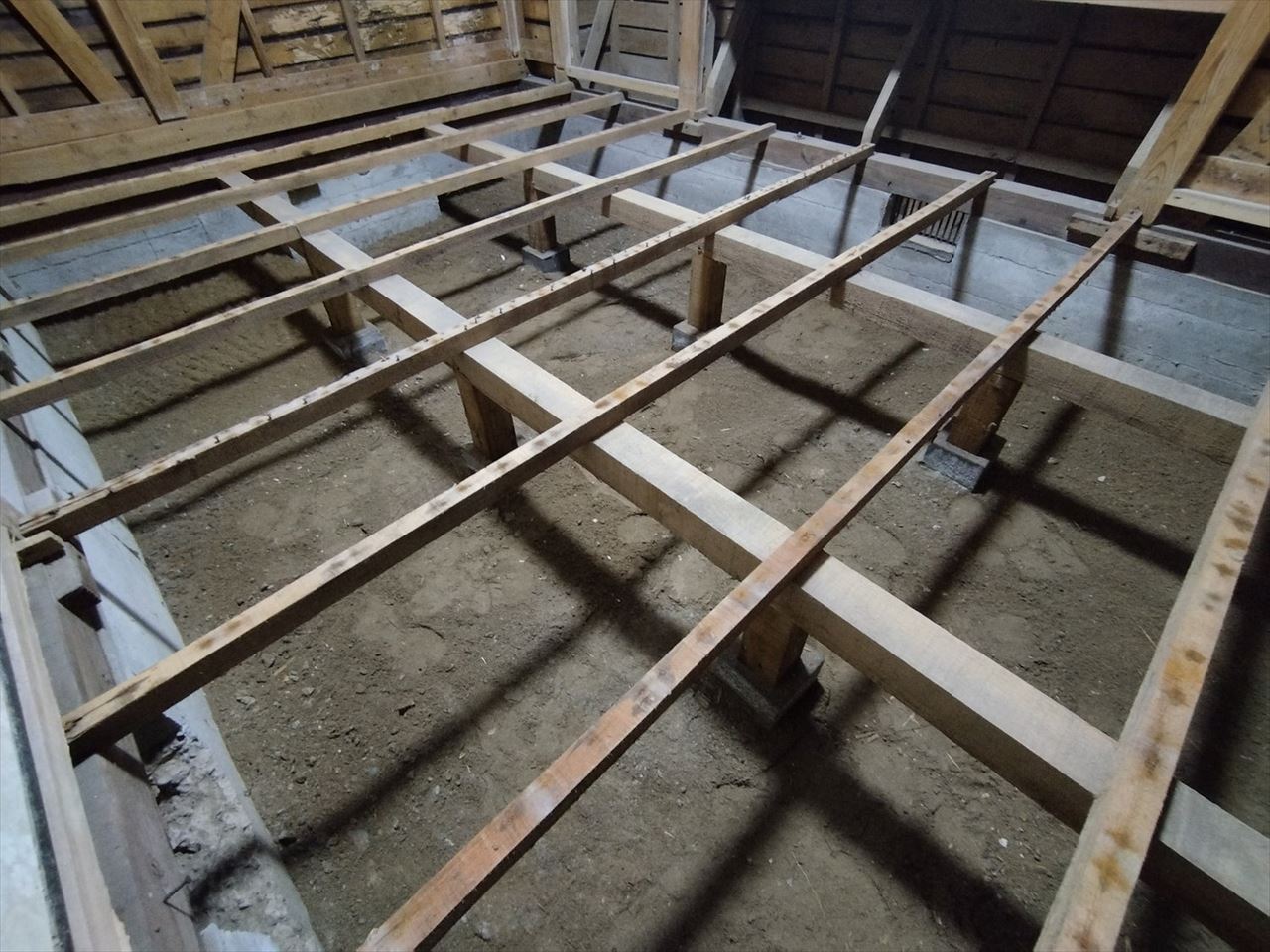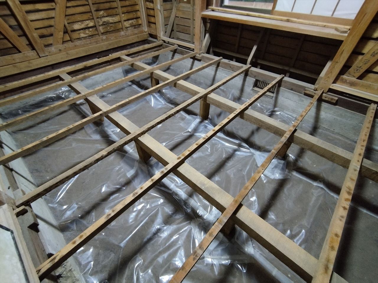和室→洋室リノベでは、荒床は剥がさずその上にさらに根太を並べて合板を敷き、フロアクッションや床材で仕上げるという方法が一般的ですが、今回せっかくなので、床下もきれいにすることに。