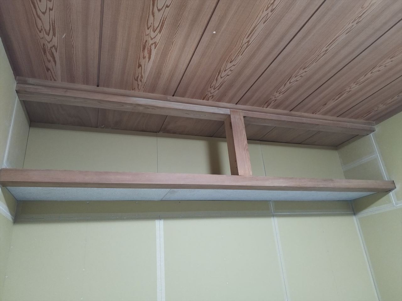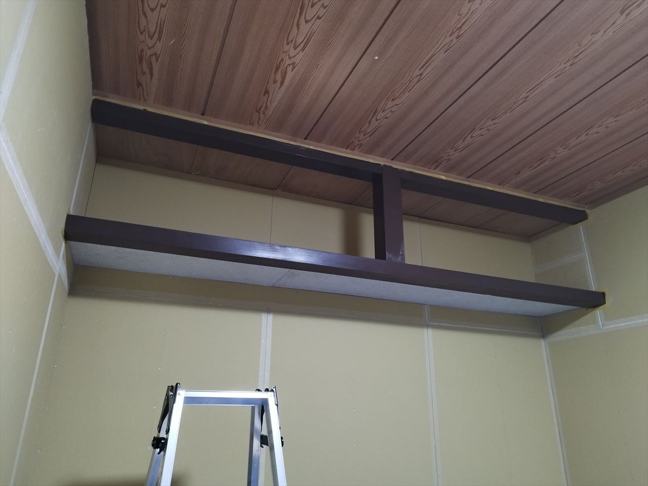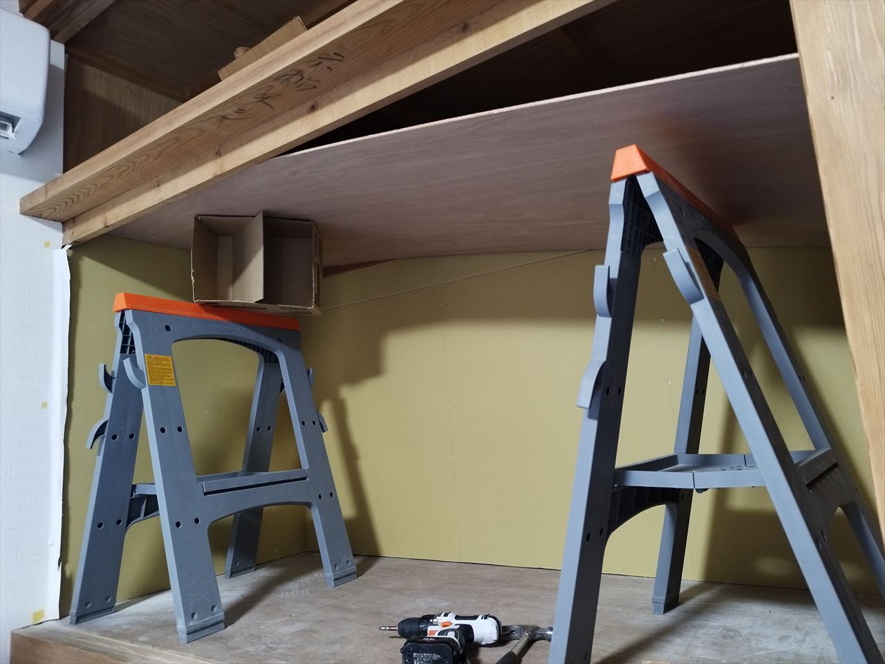 広いほうの押入れの天井にはベニヤ板を取り付けました。
