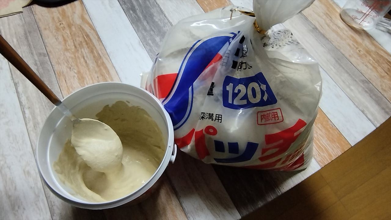 ケチりながらパテ塗り作業をするとなかなか平らにならず、時間もパテも逆に浪費してしまうということで、次は粉のパテを買って、自分で練って使いました。これだとたっぷり塗って、さっとへらで平らにできるので、美しく仕上がります。