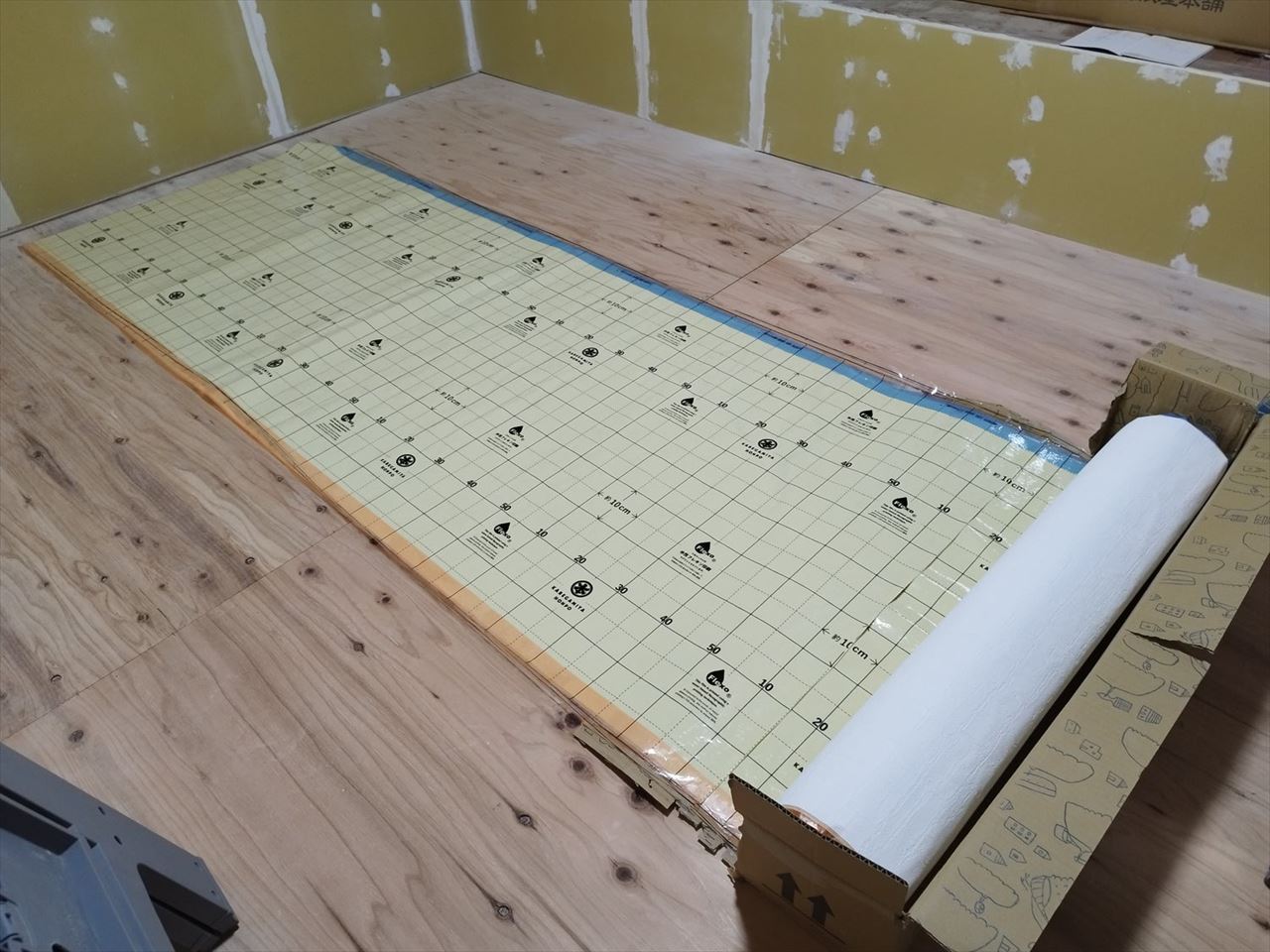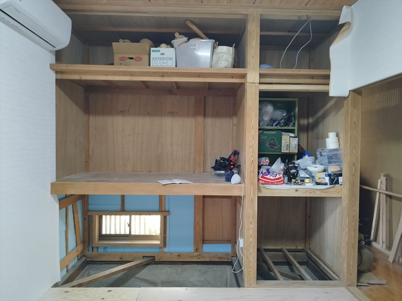 この後、広いほうの押入れの上段床にはクッションフロアを敷きました。床部分は部屋の床と同じフロアタイルを。