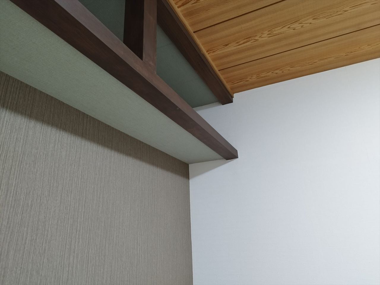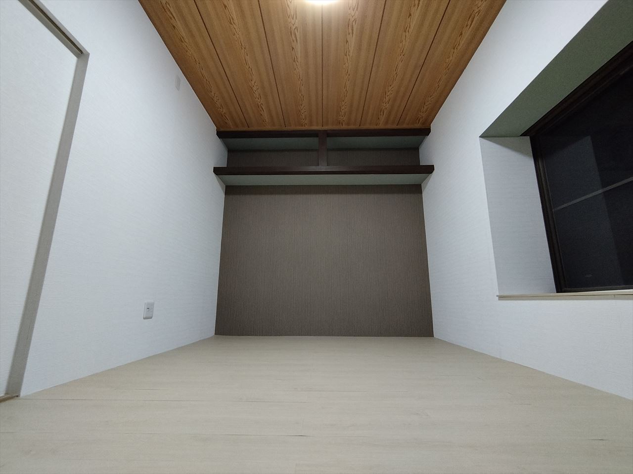 さらに、天袋の裏に青緑ぽい色の壁紙を貼り、一番奥の北側の壁には濃い木目模様の壁紙を貼りました。