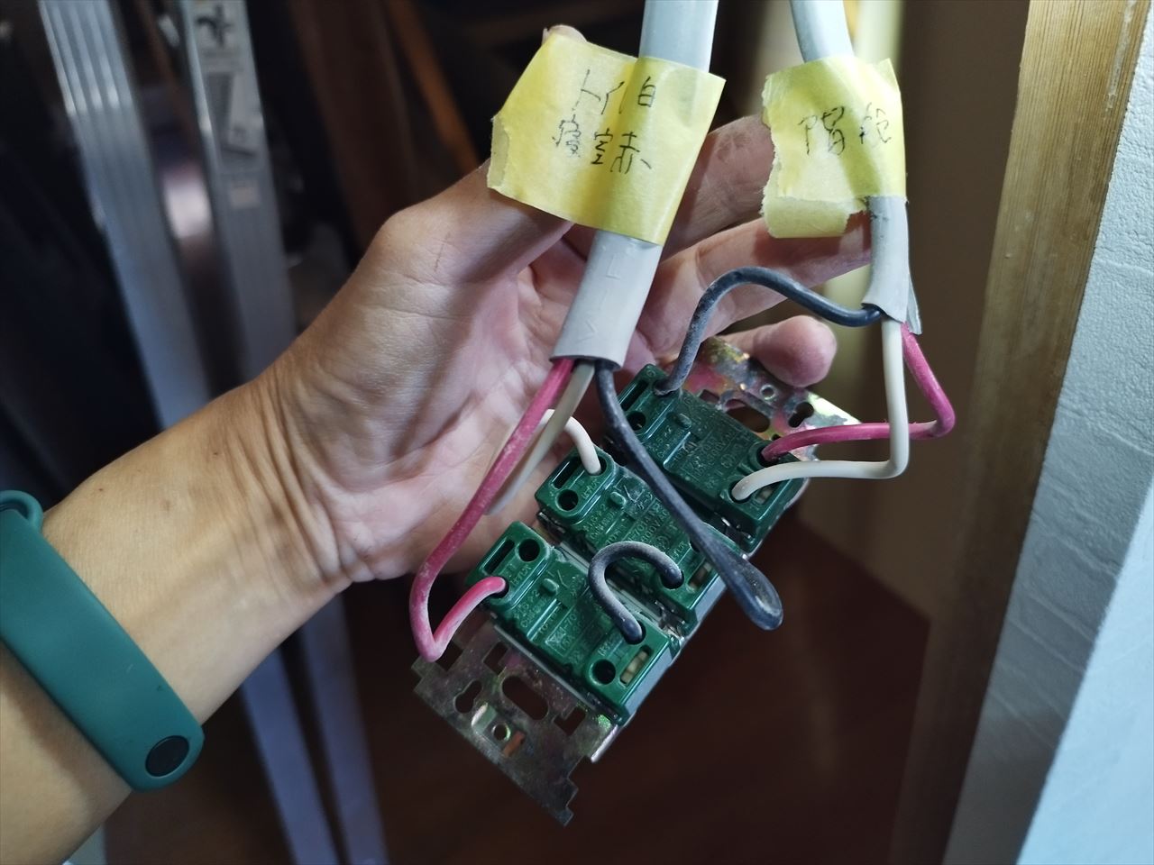 セルフリノベ中の部屋に加え、トイレと階段の照明スイッチも一緒です。