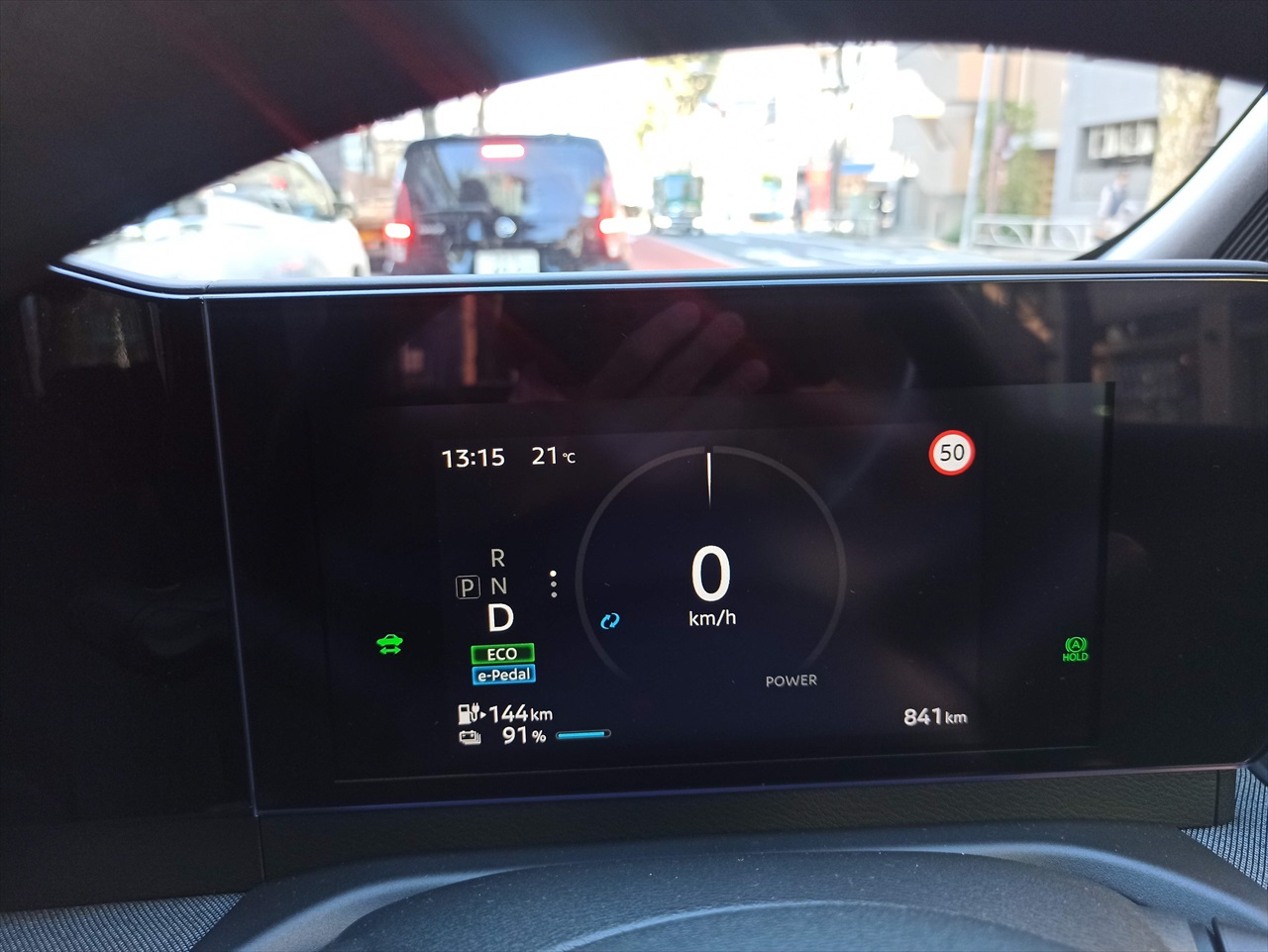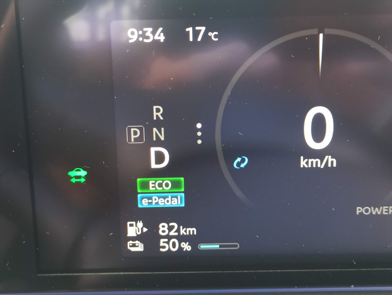 その上の「e-Pedal」は、アクセルを緩めるとブレーキもきくというシステムで、e-Pedalボタンを押すと有効になる。