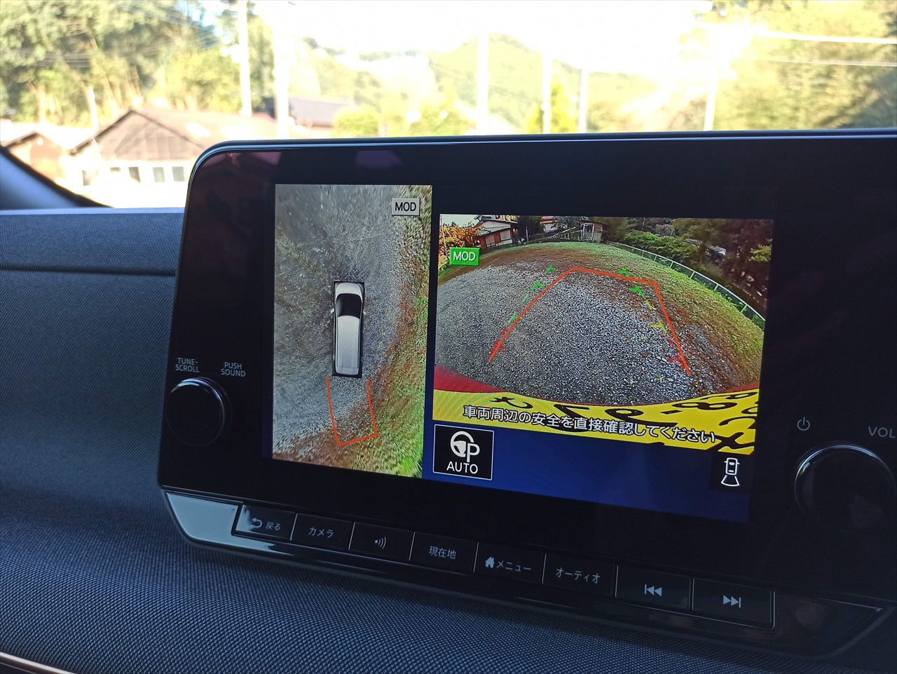 その後、八王子郊外のコンビニ駐車場でも、このモニター映像のおかげでちゃんと枠内に停めることができた。前方の位置を勘違いしちゃっていたけど。