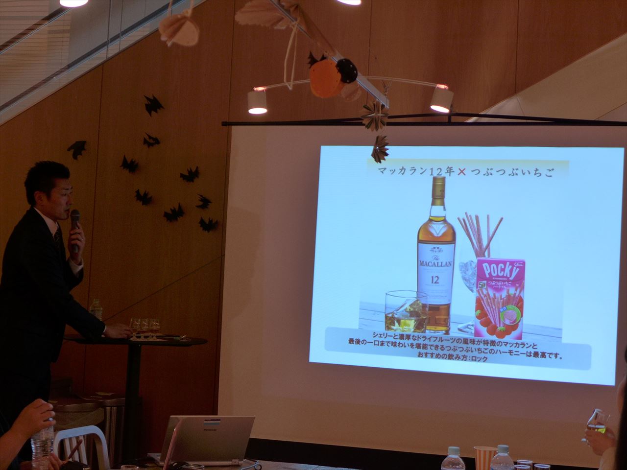 この方が、ウイスキー基礎知識から始まり、ポッキーとウイスキーをどう合わせたら両社の味わいをさらに楽しめるのか、熱く語ってくれた。