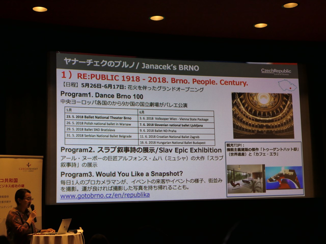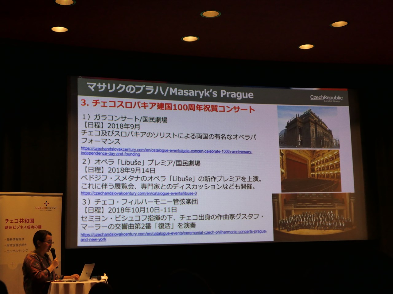 そんなわけで今年2018年には、チェコ国内の各都市さらには日本国内でも、様々な記念イベントや活動が行われる。昨夜、チェコ大使館に隣接された「チェコセンター」でその発表プレゼンがあったので、一部をご紹介しよう。