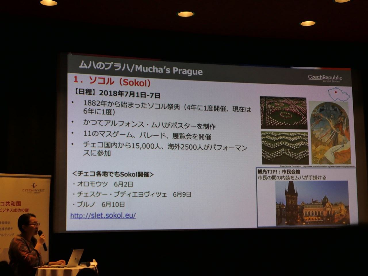 そして日本人、特に女性に大人気の古都プラハでは、6年に1度の「ソコル祭典」が開催される。ミュシャ(アルフォンス・ムハ)がかつてポスターを手掛けたこともあるこの祭典は、チェコ国内から15,000人、海外から2,500人がパフォーマンスに参加する大規模なもので、マスゲーム、パレード、そして展覧会など。