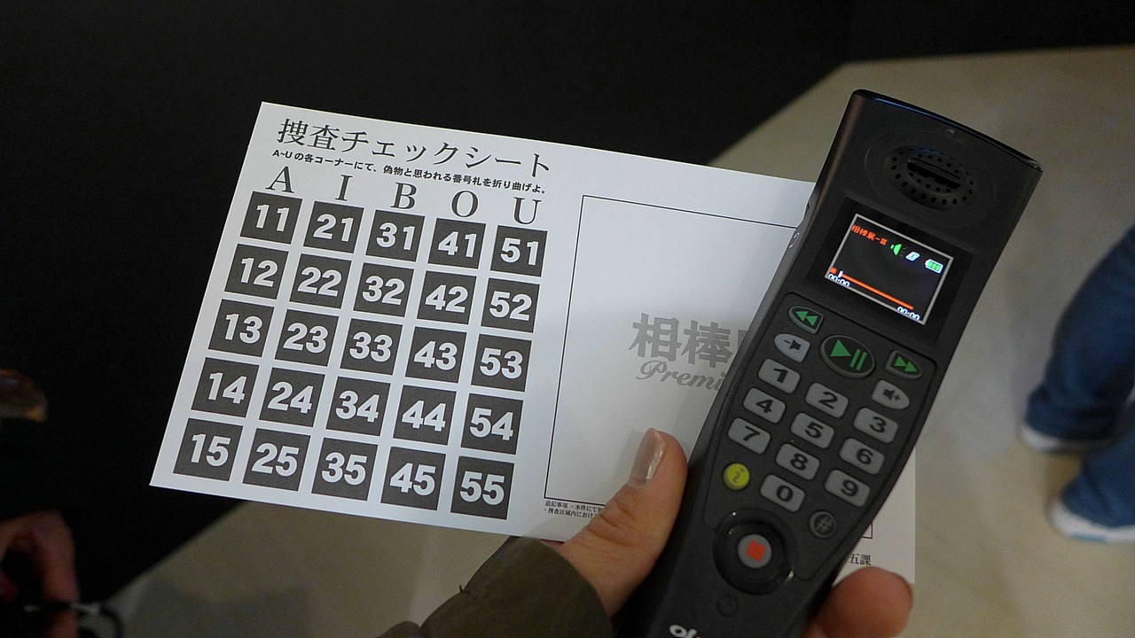 電話機っぽい音声ガイドを使ってクイズ式に会場内を進む方式で、なかなか楽しめた。
