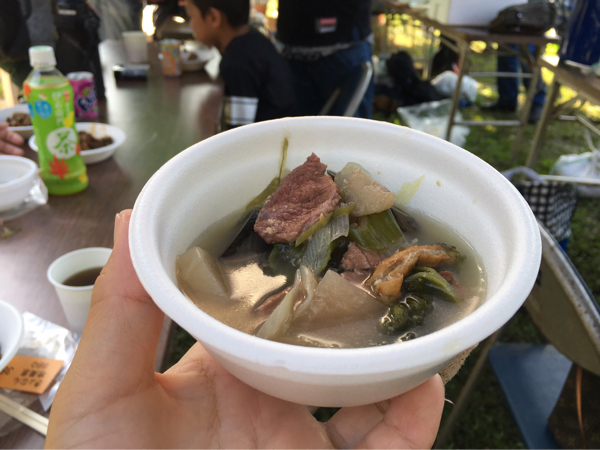 子供たちも美味しそうに食べていた。「豚じゃないのよ、山に住んでるイノシシなの」と説明する大人たち。そいや最近は千葉市内でも出没するらしい。
