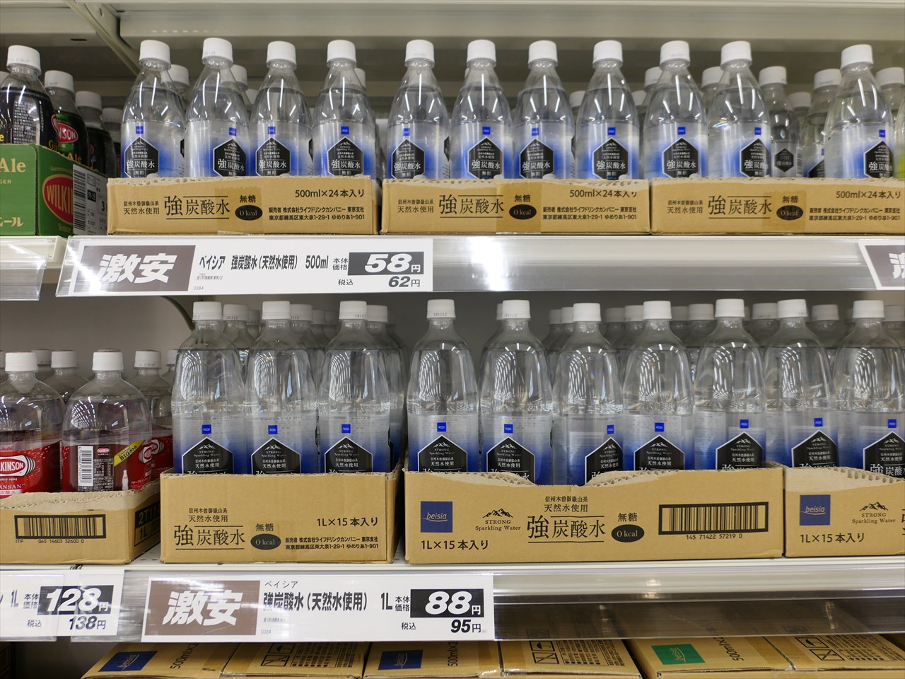 500mlで税込62円、1Lボトルでも95円だ。