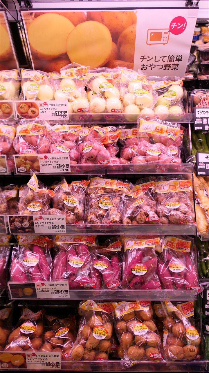 野菜売り場に普通に置かれていたら、「小さくて調理が面倒かな」と思うサイズのサツマイモも、こうなっていれば買いたくなる。