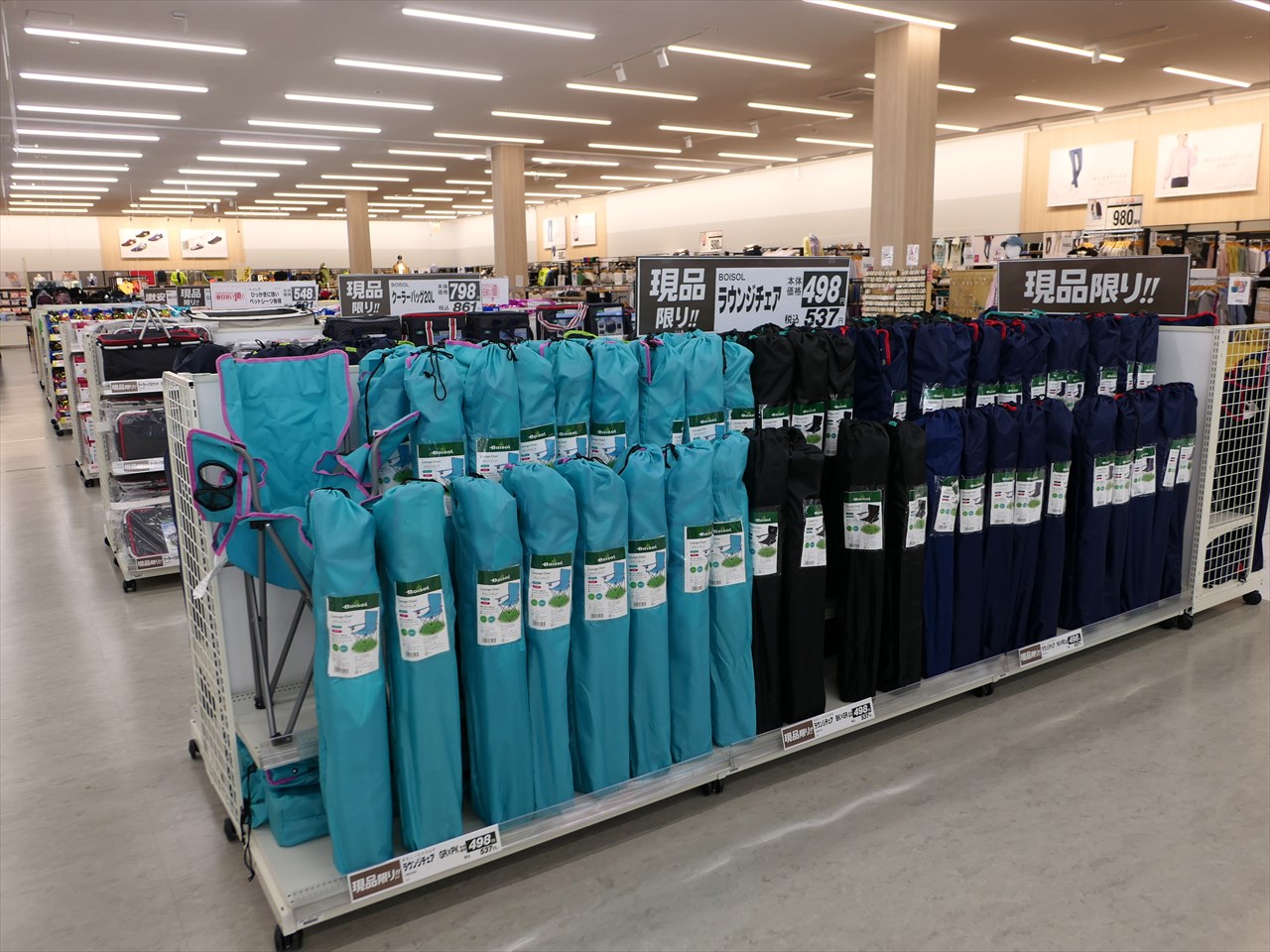 ベイシアワールドスポーツのアウトドアブランド「BOISOL」のラウンジチェアは、なんと一脚税込537円という激安っぷり。