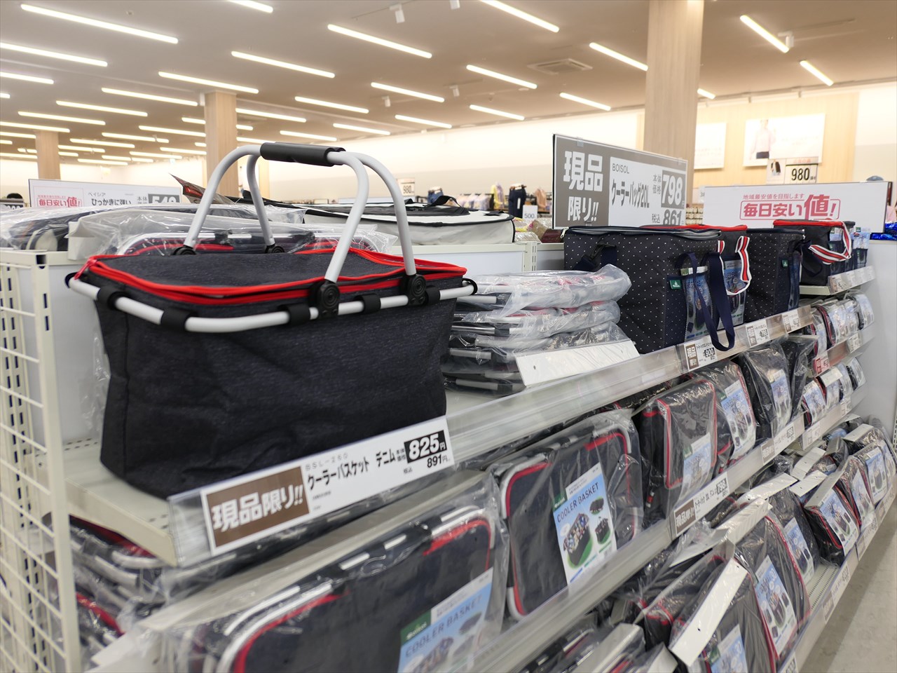 キャンプに使えるお手頃価格のものもたくさんあるので、もし不足アイテムがあるならベイシアに行ってみよう。勝浦店は違うが、店舗によっては同グループのホームセンター「カインズ」併設の店舗もある。