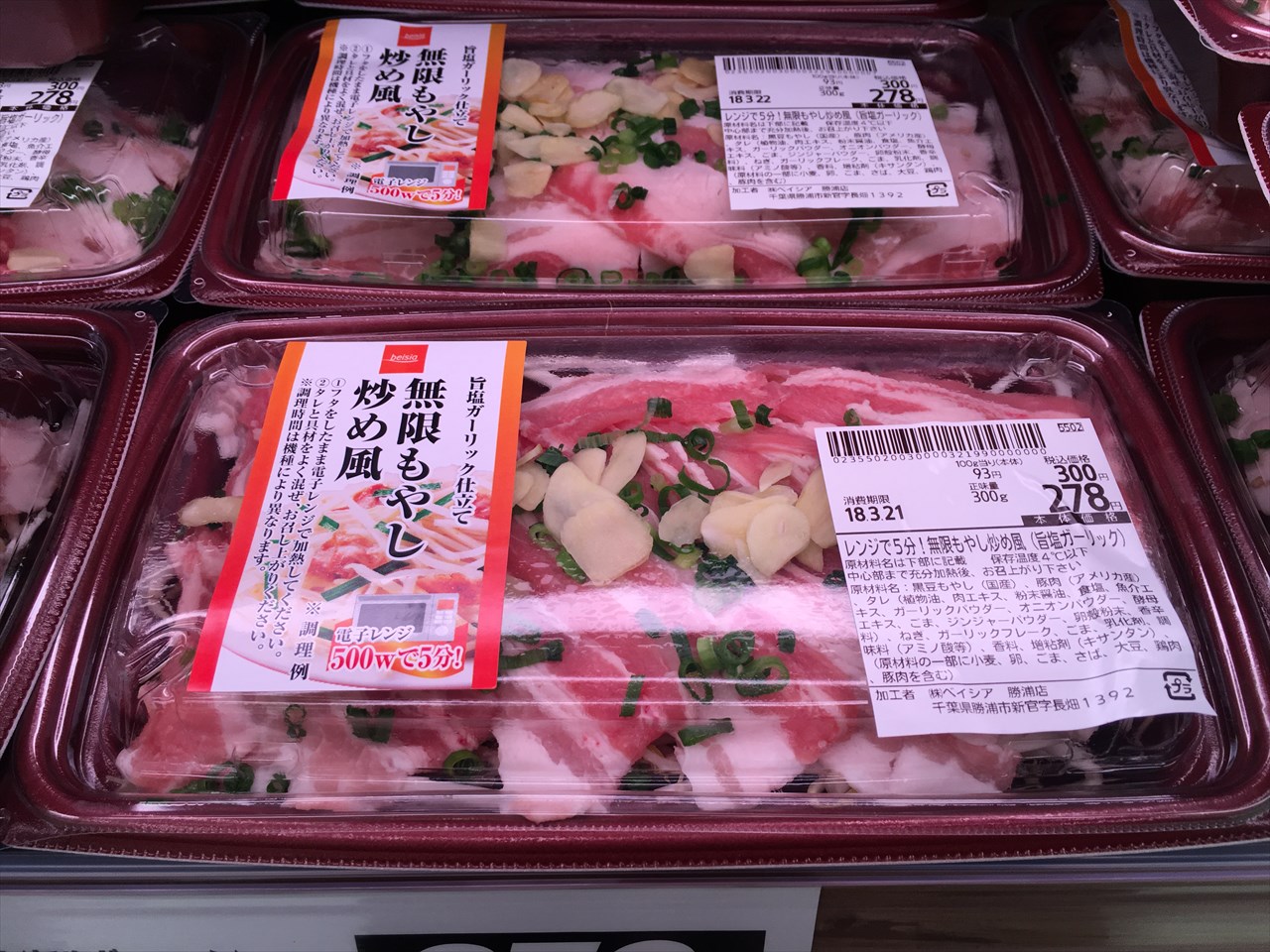 豚肉ともやし、それにガーリックパウダーやオニオンパウダーで味付けし、スライスにんにくなどを散らした「無限もやし炒め風」は、パッケージのまま電子レンジで5分加熱すれば完成しちゃうそう。