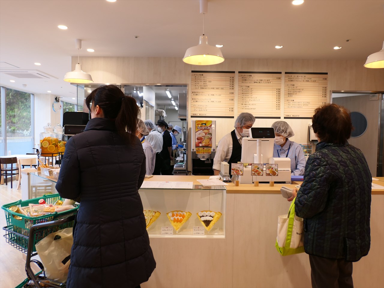 ベーカリーのレジではカフェメニューの注文もできる。