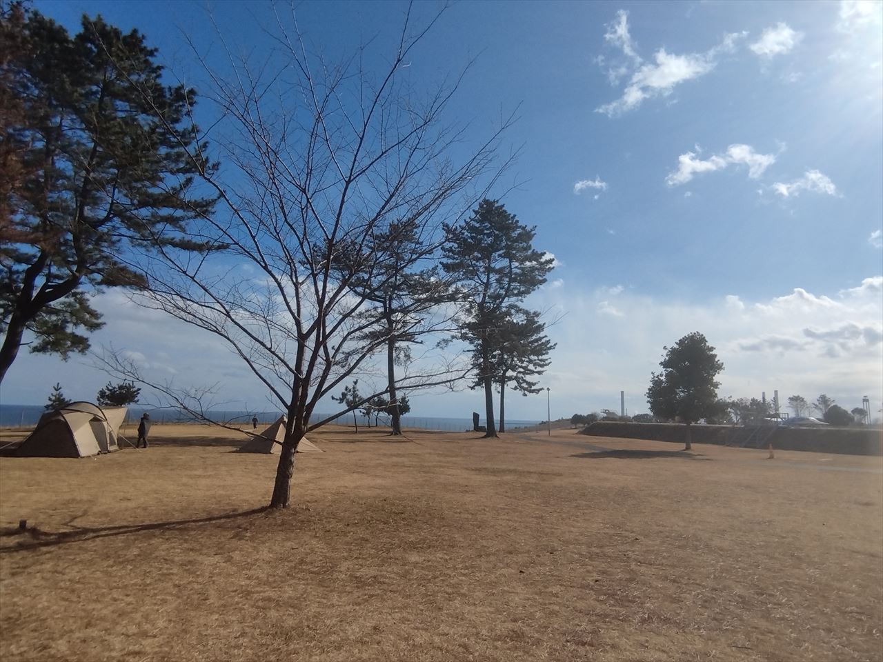 天神岬スポーツ公園の中心は、だだっぴろいキャンプ場。