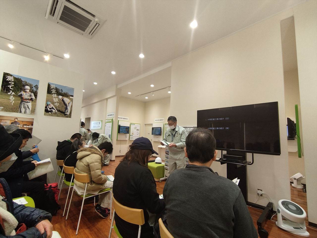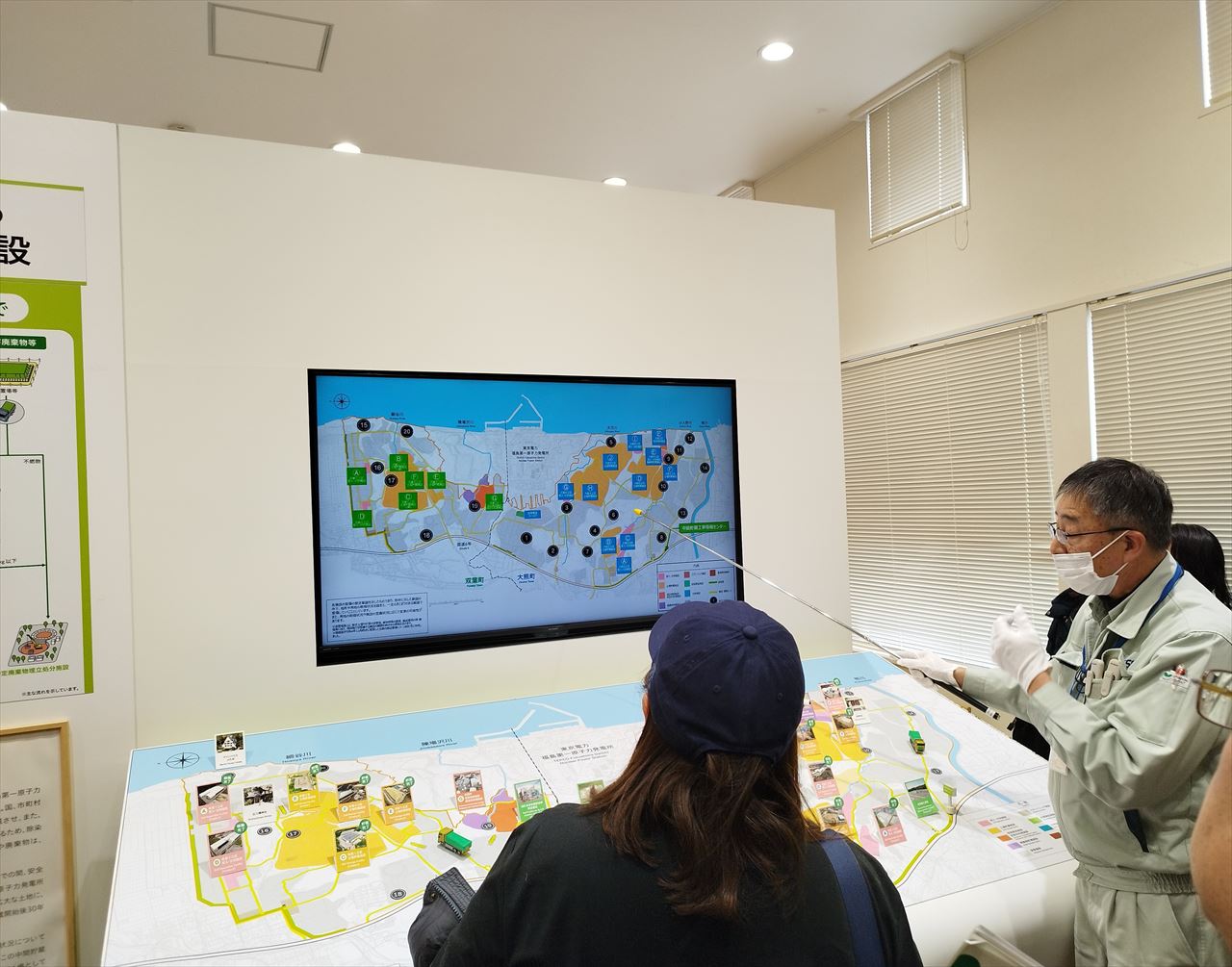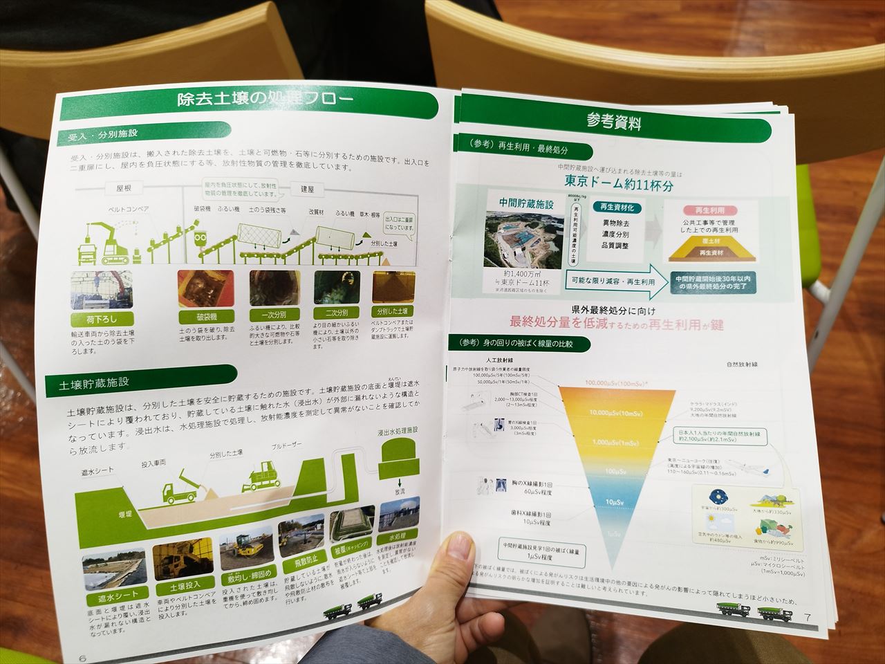 まずはここで施設職員から、中間貯蔵施設とはどういった施設で、これまでどのような作業を行ってきて、現状はどうなっているのかという説明を受けた。