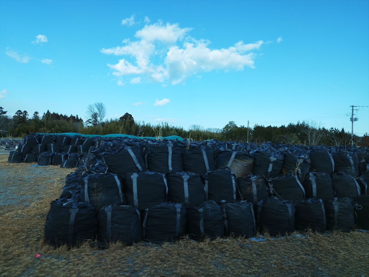 除染活動は、このエリアだけで行われていたわけではなく、かなり距離が離れた福島市や伊達市の山間部でも行われていたし、土や草木に加え、津波で破壊された家屋なども対象に。その量は膨大で、各市町村の空き地などに並べられていたフレコンバッグ入りの廃棄物を、ピーク時には一日のべ約3000台のダンプトラックが稼働していたとのこと。