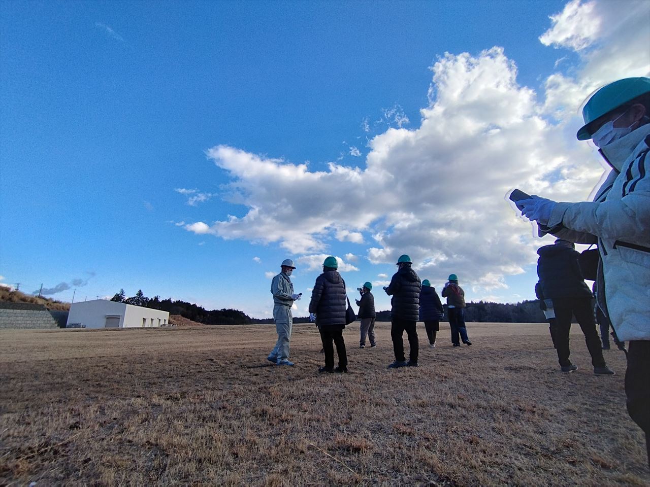バスから降りて、実際に除去土壌などを埋めて保管している場所の上に降り立った。だだっ広くてまっ平らな土地。