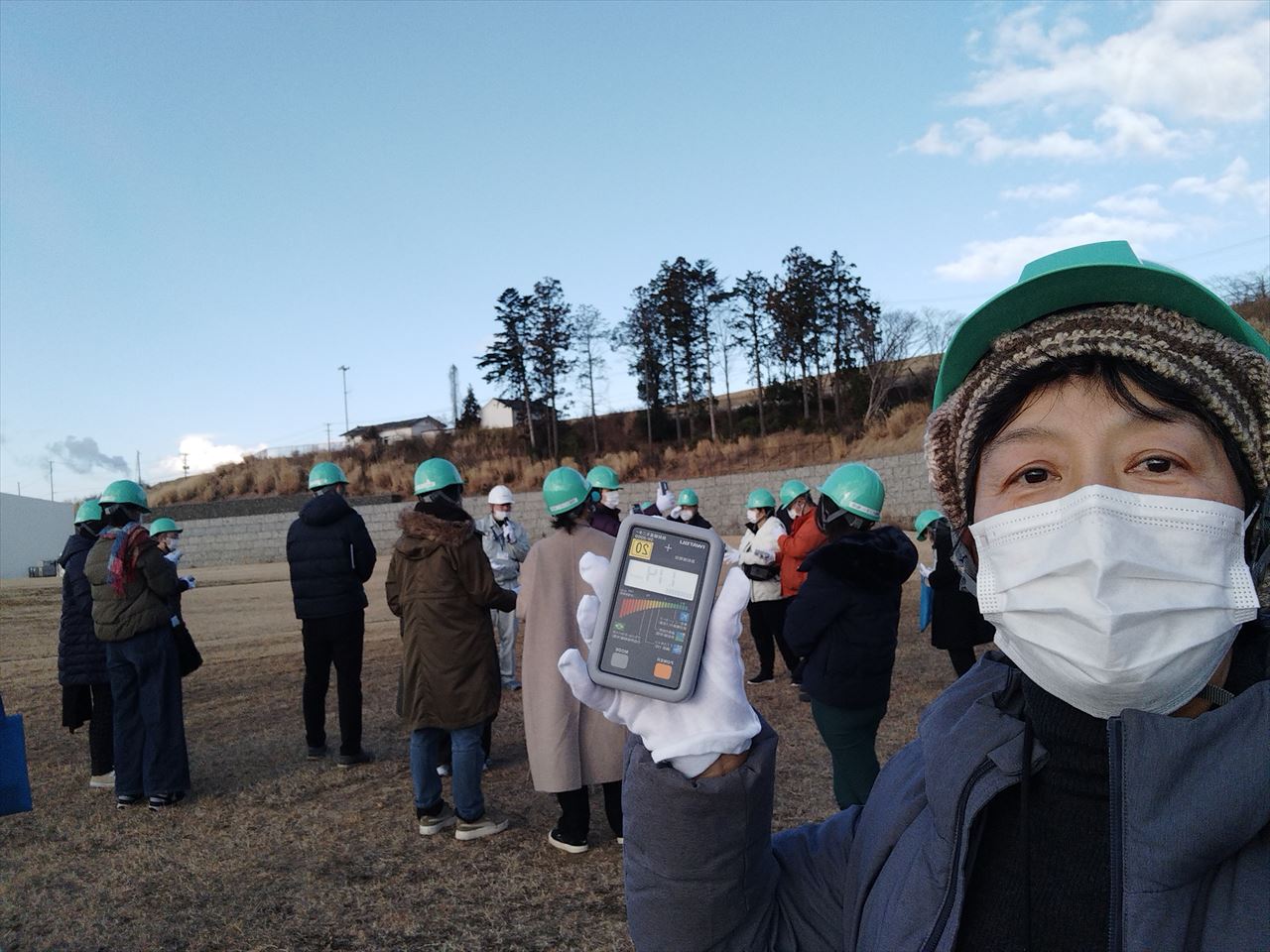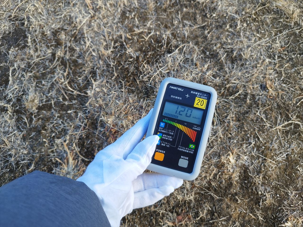 このエリアの線量は、周辺の除染が行われていない雑木林などから来ているものなので、時間がなくてやらなかったが、埋め立てたエリアの中央にいけばいくほど、線量は下がり、奥の草木が茂っているところに近づいていくとあがっていくのだという。