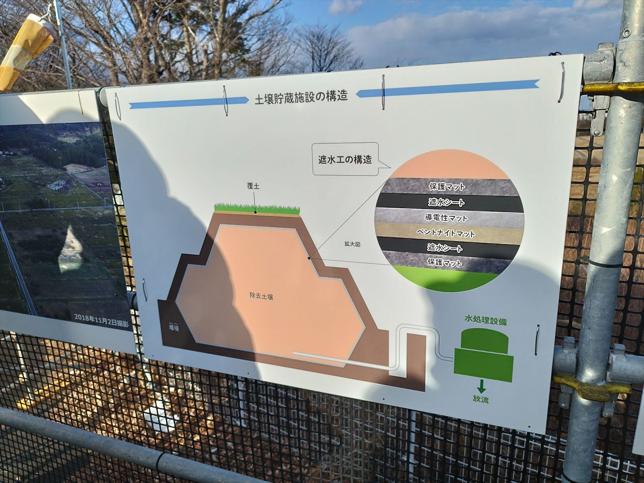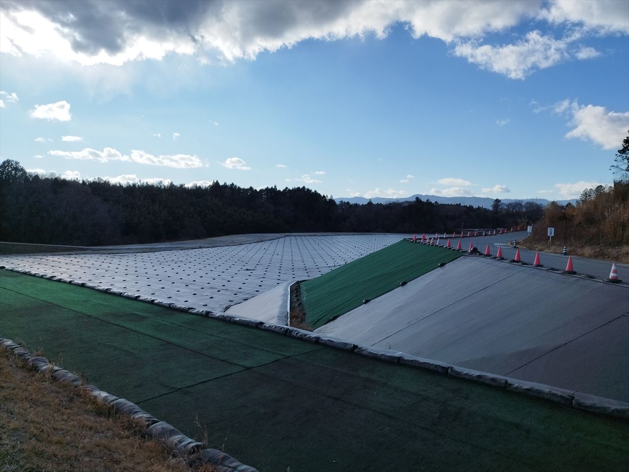 一番底の部分と周囲そして上部には、遮水シートや保護マットなどが何層にもわたって敷かれており、地震などの自然災害で崩れてしまわないような構造にもなっている。