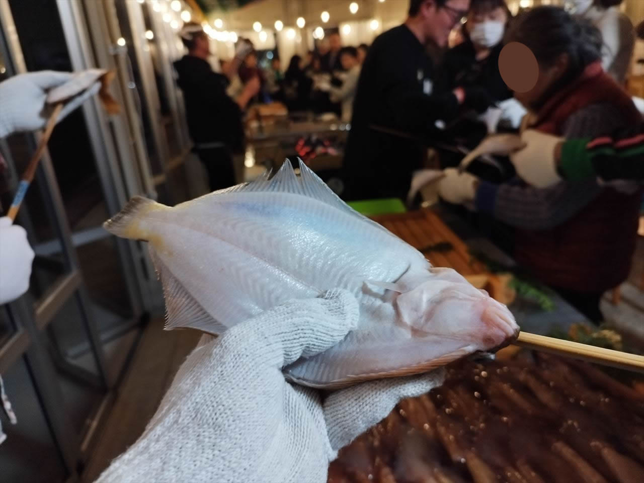 カレイを竹串に刺すのも初めてなら、炭火で焼いたカレイを食べるのも初めて。