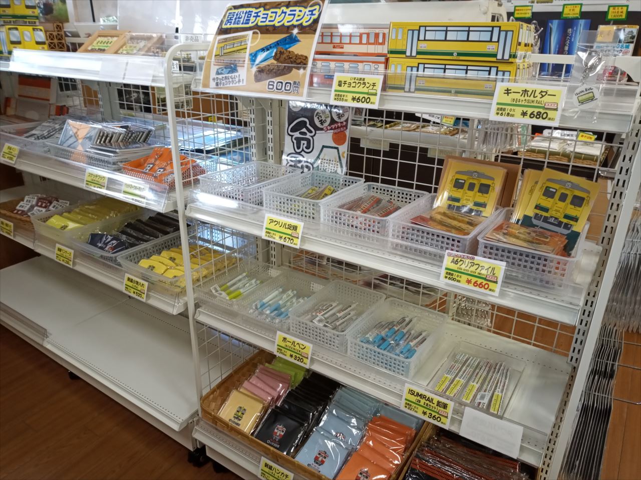 いすみ鉄道の関連グッズもここで買える。