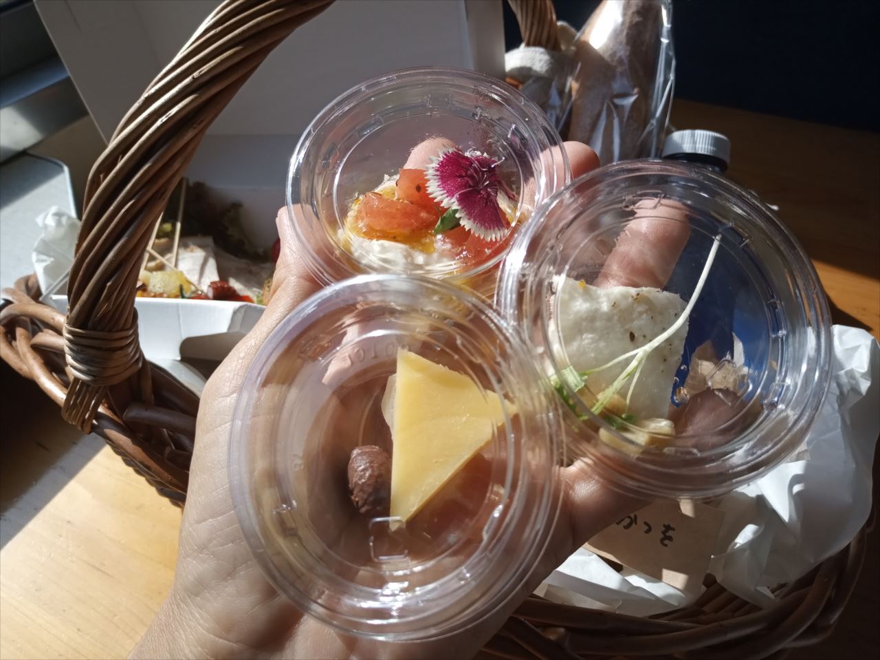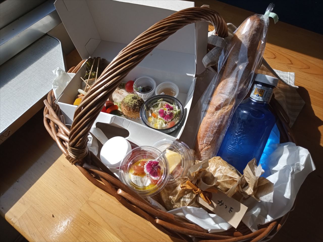 ランチは、串にさしてあったり、一口サイズだったりするので、写真を撮ったり車窓風景を楽しんだりしながら、のんびり食べられる。