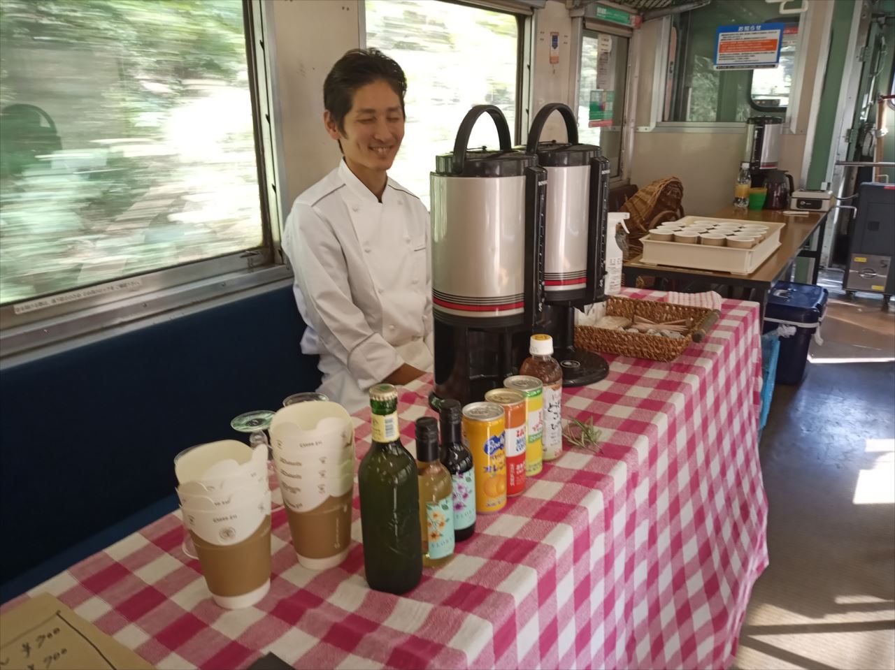 途中の駅から、いすみ鉄道応援団の団長さんという方が乗り込んできて、客車内を盛り上げながらポップコーンやドリンクの販売なども。