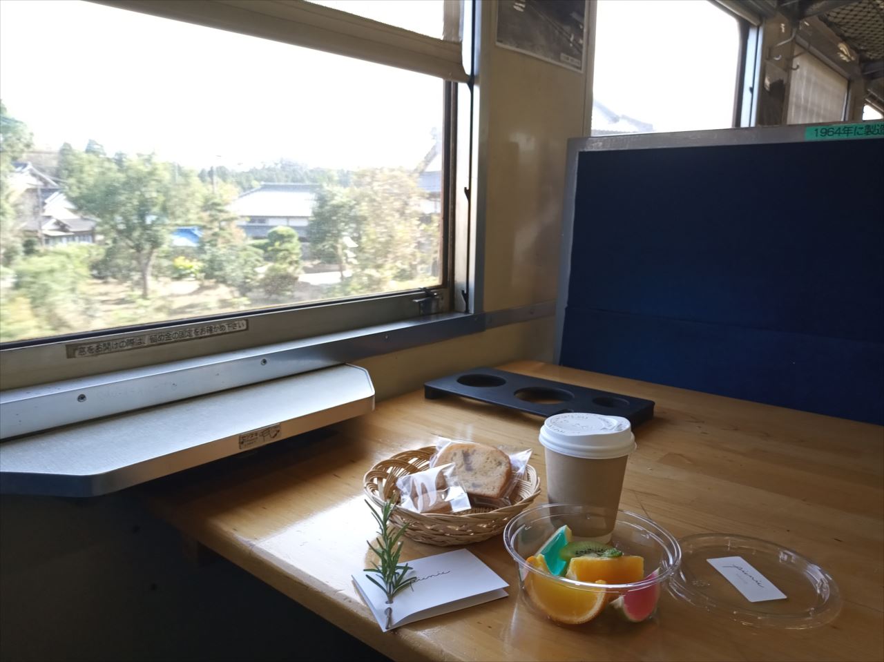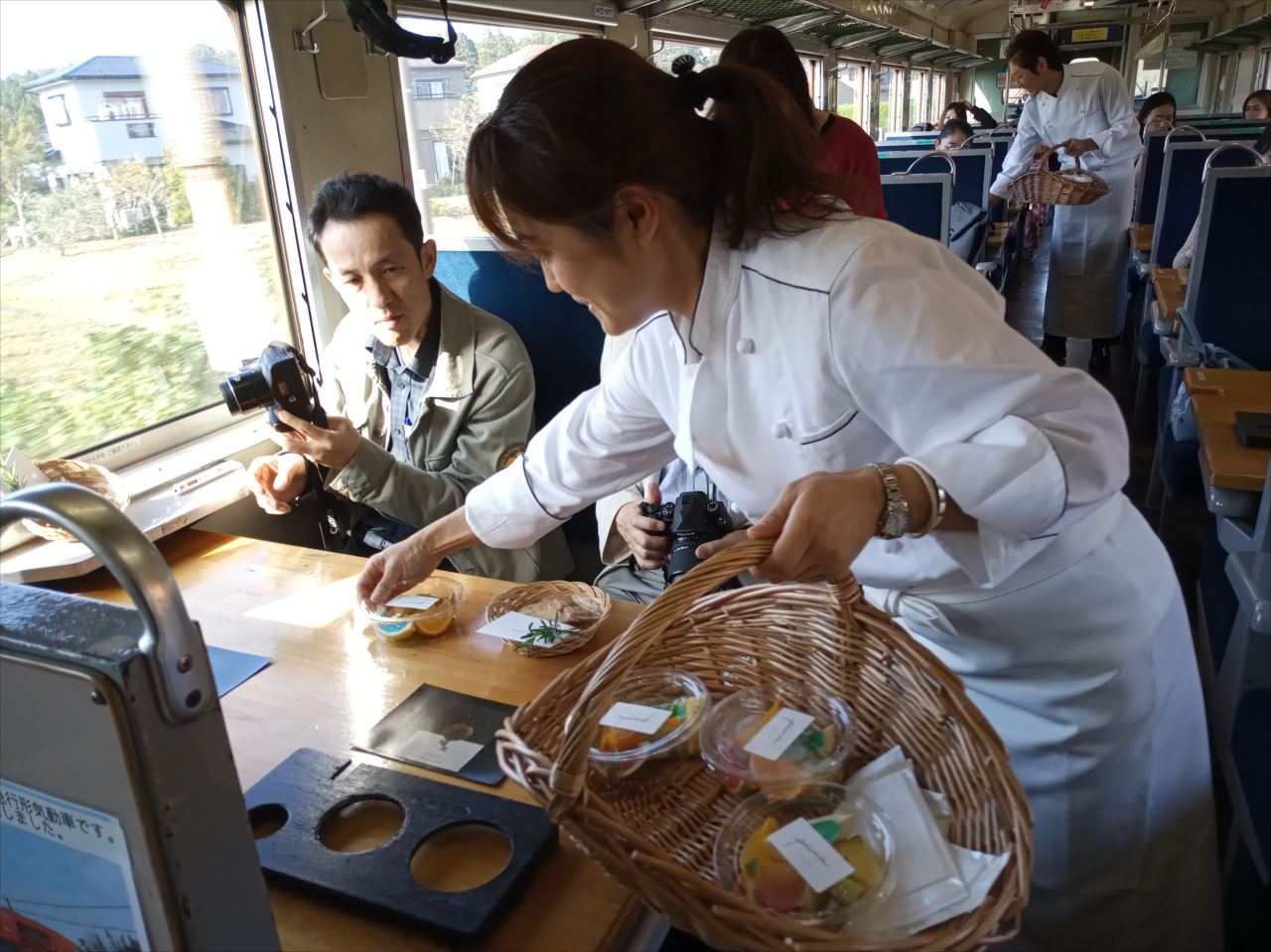 コトコト列車の振動に揺られ、水田や林、渓谷と目ま変化してゆく車窓風景を眺めながら、のんびりマイペースで食事をする。