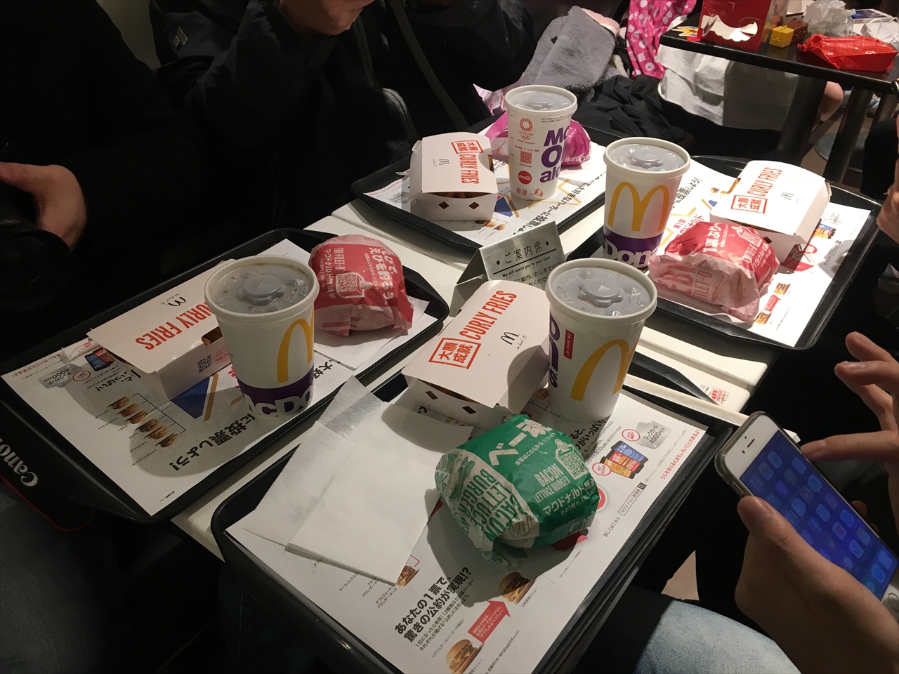事務局から渡されたマックカードを使って、好きなハンバーガーセットを注文。