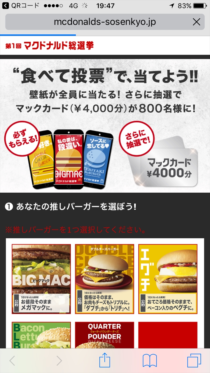 公約も確認しながら自分の推しバーガーを選択して次へ進み・・・