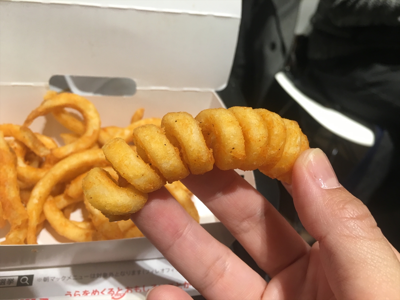 なお総選挙とは関係ないが、カーリーポテトフライが期間限定で発売になっていた。セットにも50円プラスすることでつけられる。