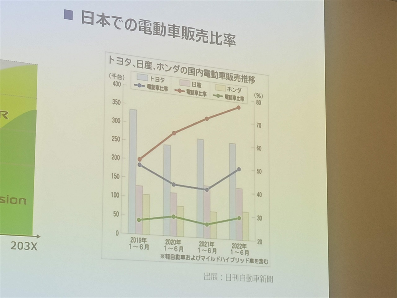 日産の電動車比率がすごい勢いで伸びていることも初めて知った。