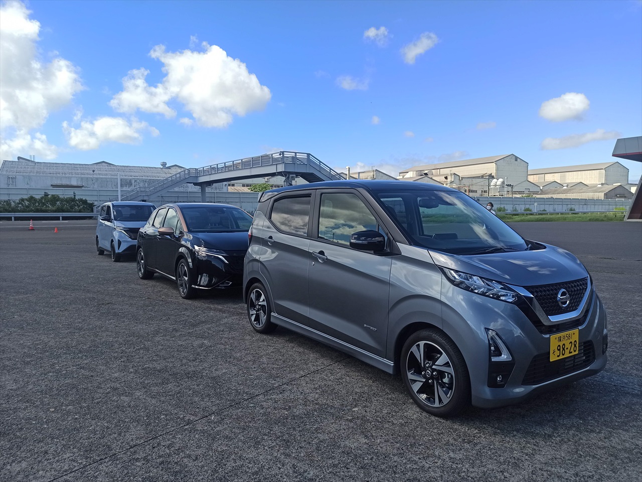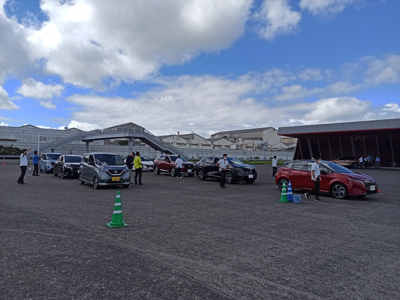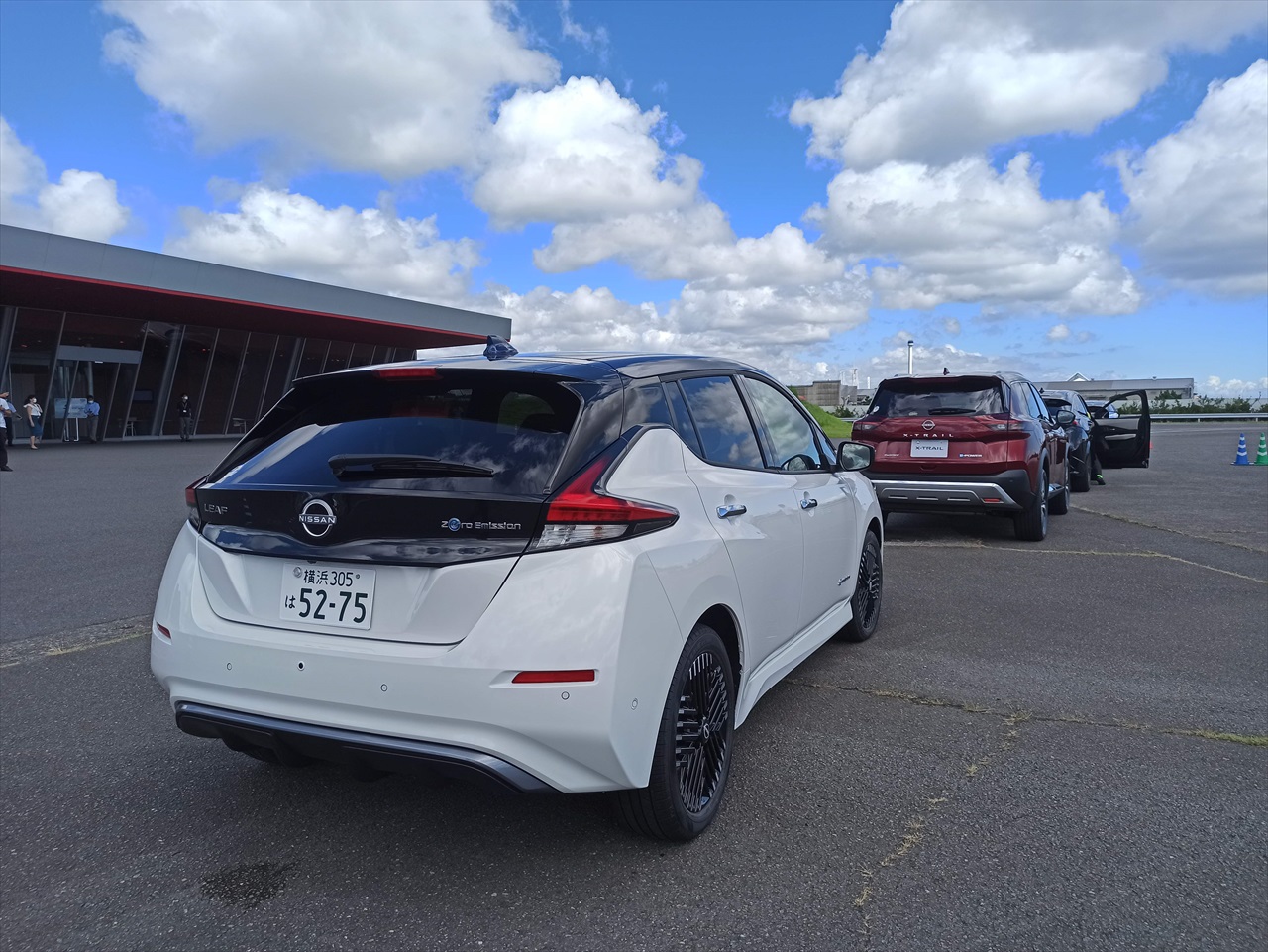 日産横浜工場の一角にある試乗コース「GRANDRIVE (グランドライブ)」で、"電気で走る"日産車5台+1台を乗り比べするというもの。