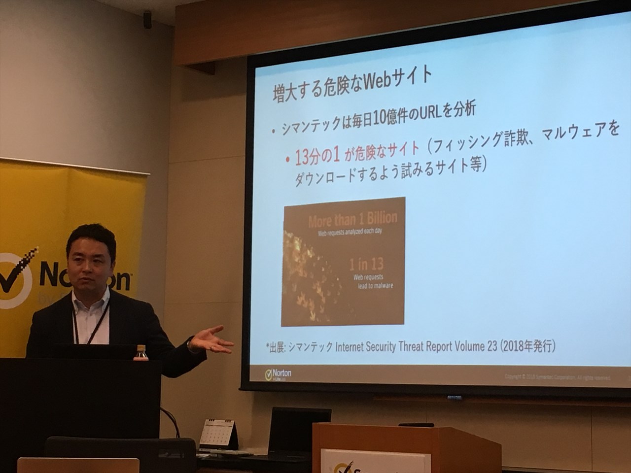 シマンテックでは毎日10億件のURLを分析して、危険なサイトかどうかを判別している。フィッシング詐欺やマルウェアをダウンロードさせるサイトも増大しているという。