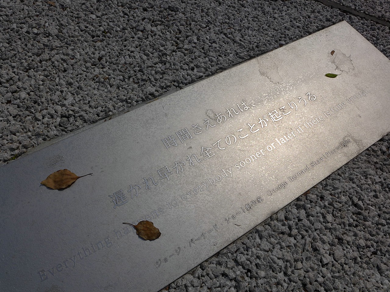 地面に埋め込まれたプレートには、時間に絡んだ格言が刻まれていたり。