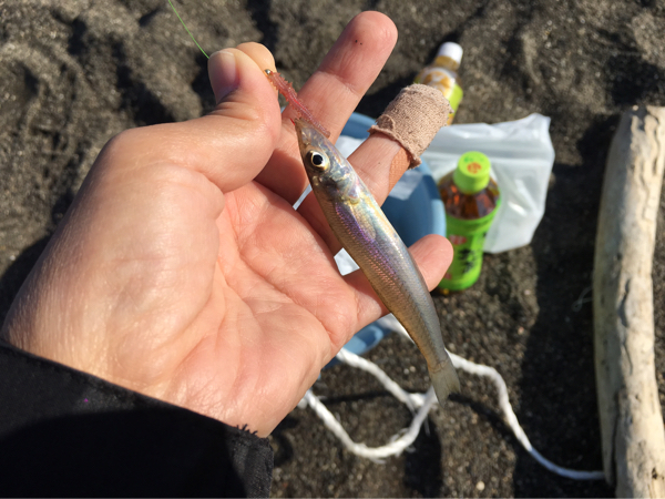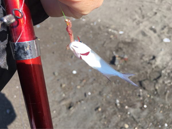 そして今回は餌の付け方を教わった。そのわずか五分後、淡い色のキスが!初釣果!