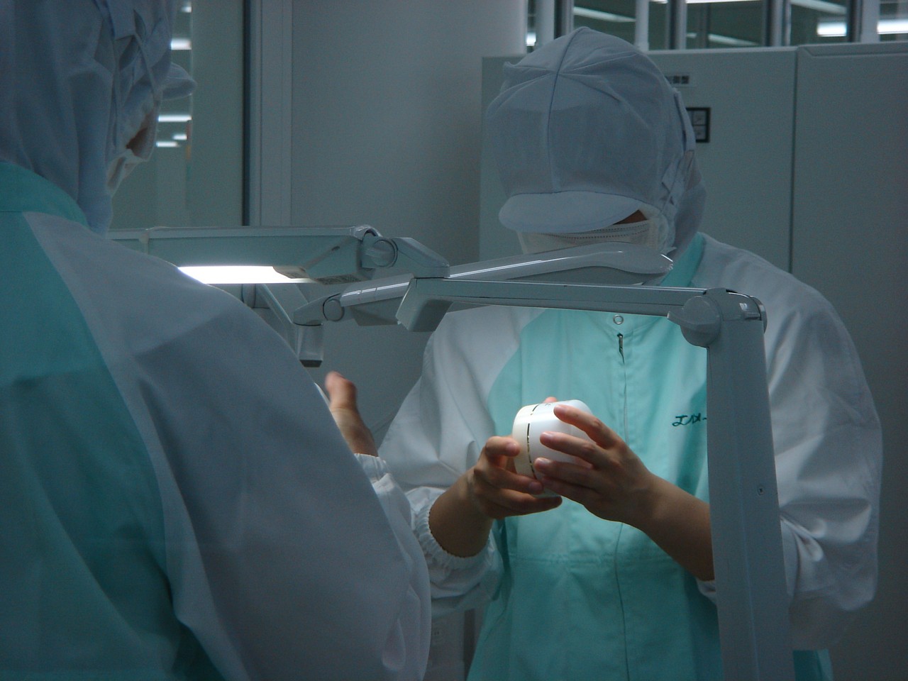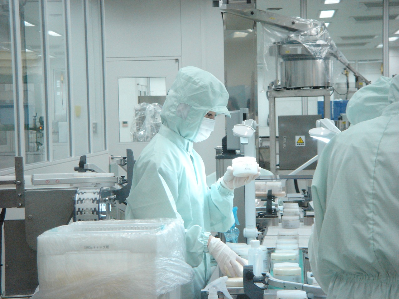 こちらは確か、チェックが終わったクリームのボトルに蓋をしているか、シールを張るかしていたところ。