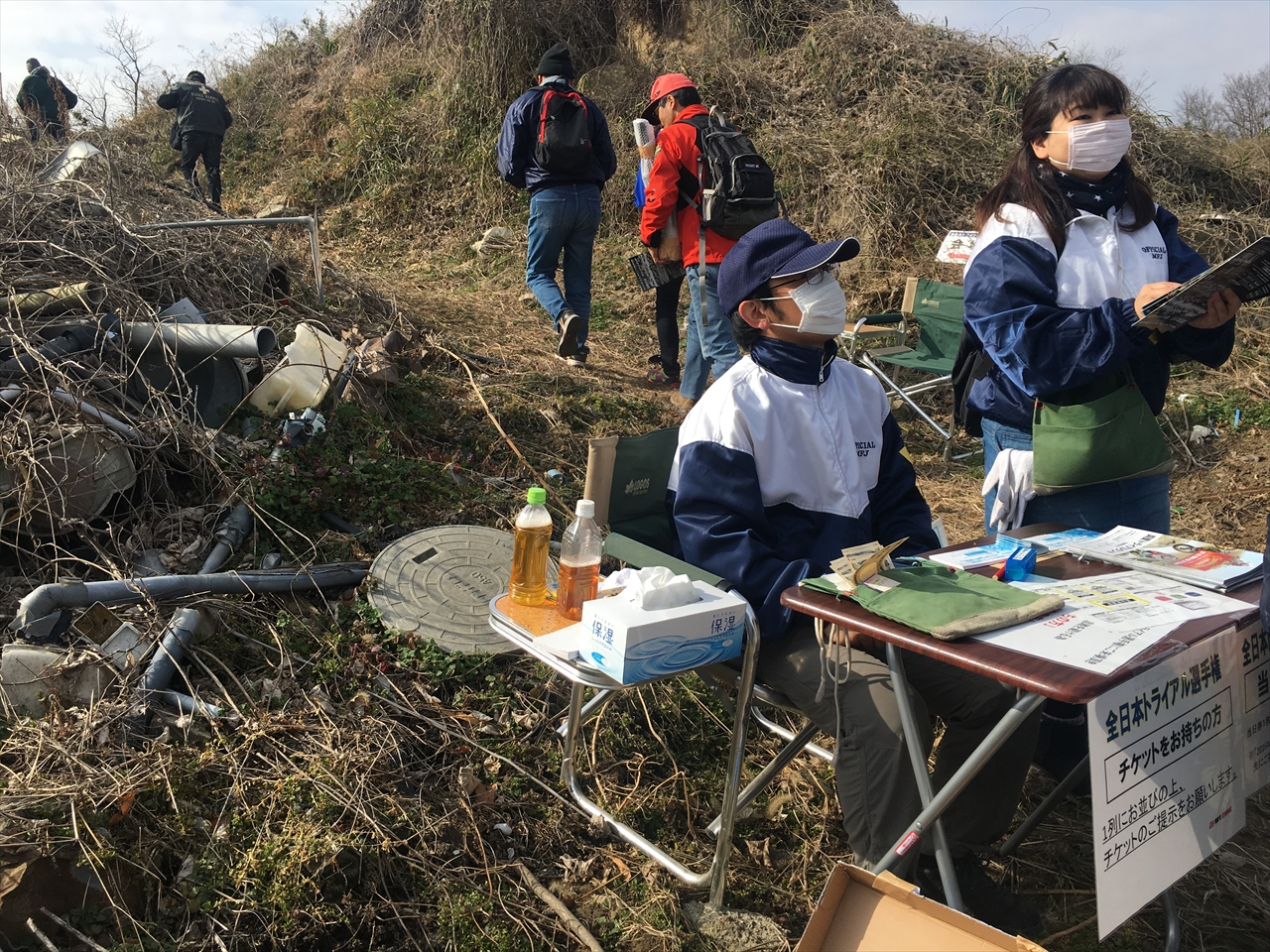 と軍手をくれるOさん。そういう情報は事前に下さいよ~。観戦コーナーみたいなのがあって、そこに立ってずっと見てるのかと思った。実は前々日に軽いぎっくり腰もどきをやり、ガラスの腰をかばっての観戦ツアー参加。これはストックと日焼け対策が必要だったな。