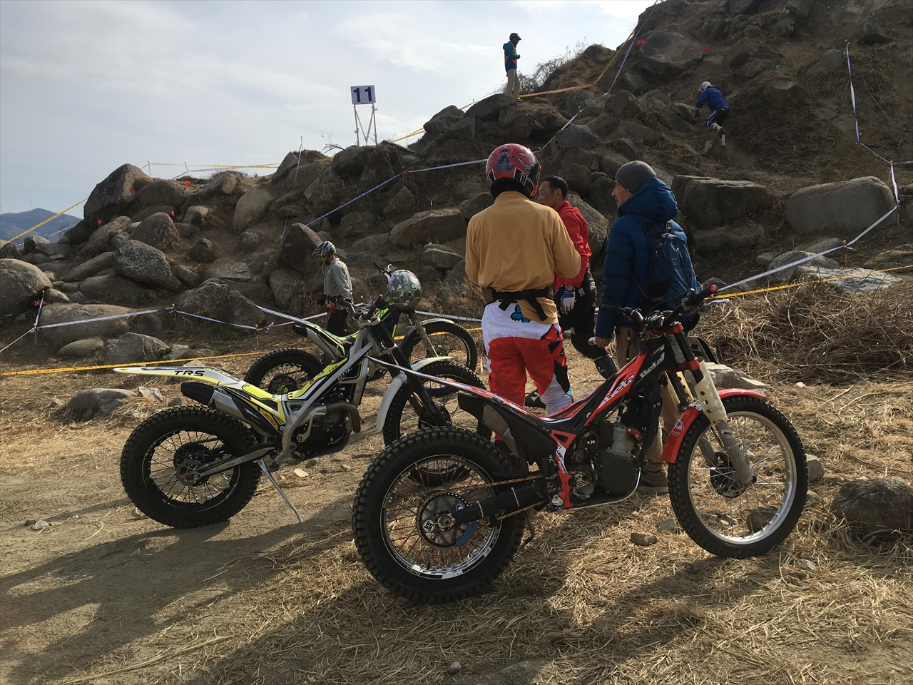 トライアルは走行時間で競う競技ではなく、用意された各セクションを基本1分以内に走り、その際のミスによる減点のトータルが最も少ない人が優勝となる。今回は11箇所のセクションが用意され、さらに上位10人だけが参戦できる「SS(スペシャルセクション)」というものが最後に待ち構えていた。