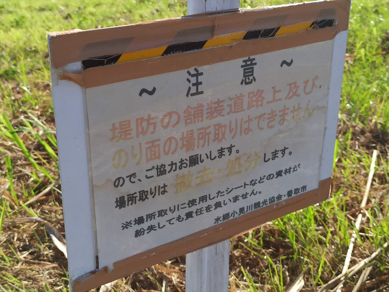 事前場所取りを発見した場合は、強制撤去します。
