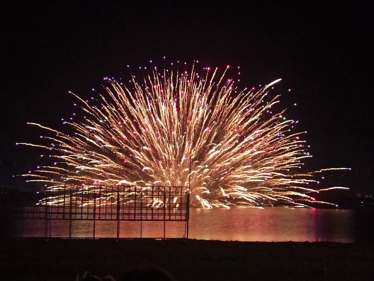利根川下流の、川幅も広い場所で打ち上げるため、割と大きな花火がたくさんあがり水中スターマインも見事な「水郷おみがわ花火大会」。