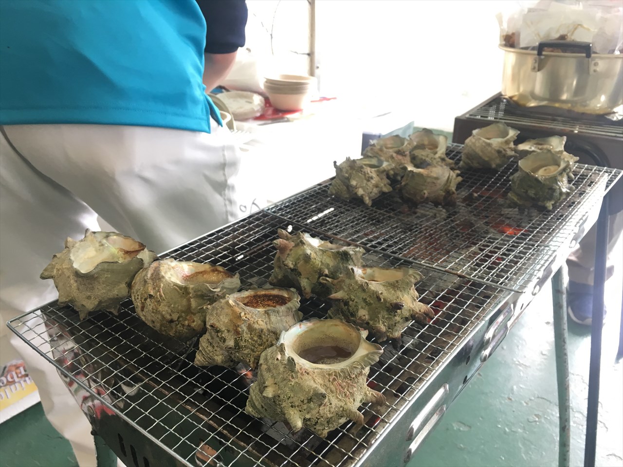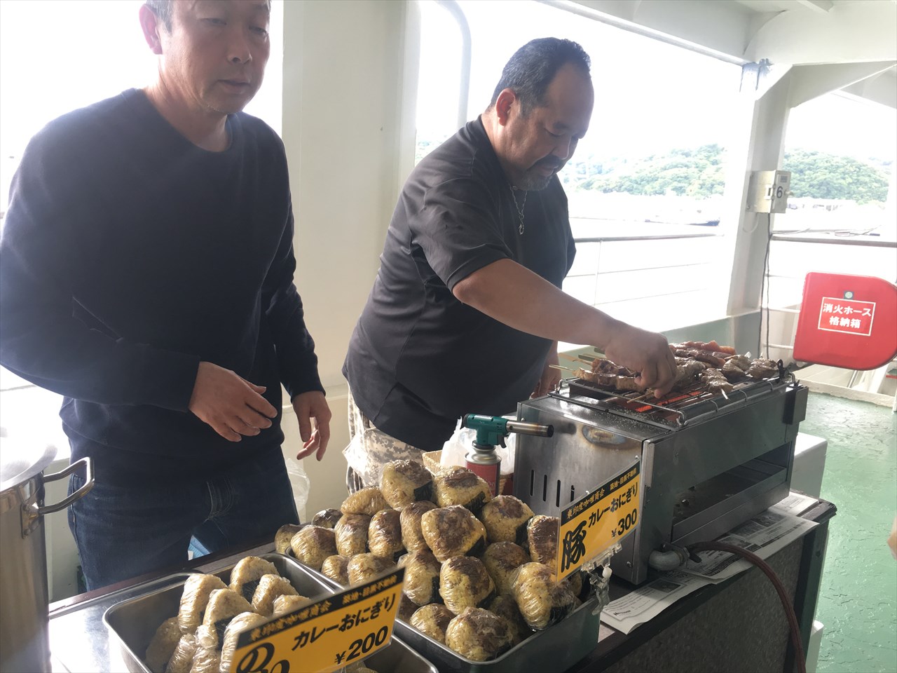 船内では食べ物もいろいろ販売されており、チケット代金に含まれる食券を使って購入できる。発泡ケースに入れられた干物を買っている人もいた。