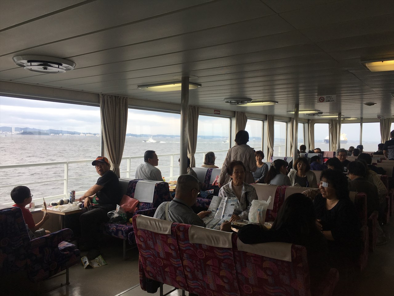 ちょっとずつ崩壊し始めている乗船メンバー。もはやどの辺りを航行しているのかよく分からず。 #東京湾フェリー #東京湾周遊特別クルーズ pic.twitter.com/VqNJtuTQOb