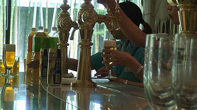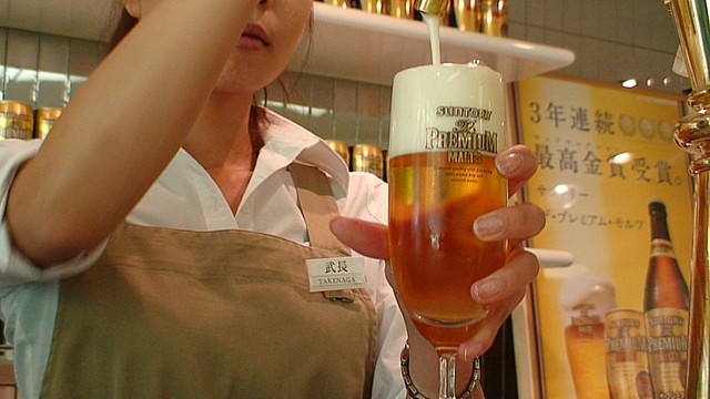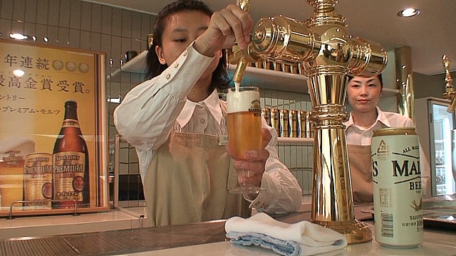 ビール工場で飲む、新鮮なザ・プレミアム・モルツ。