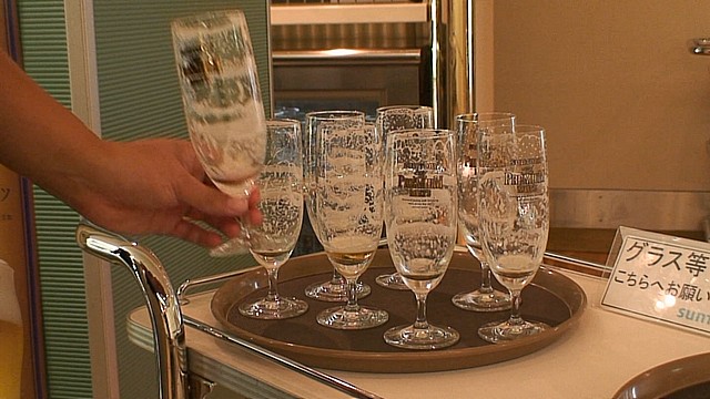 ツアー引率のMさんによると、グラスがきれいで、ビールが上手に注がれていないとこれはできないので「おいしい証拠」なんだとか。